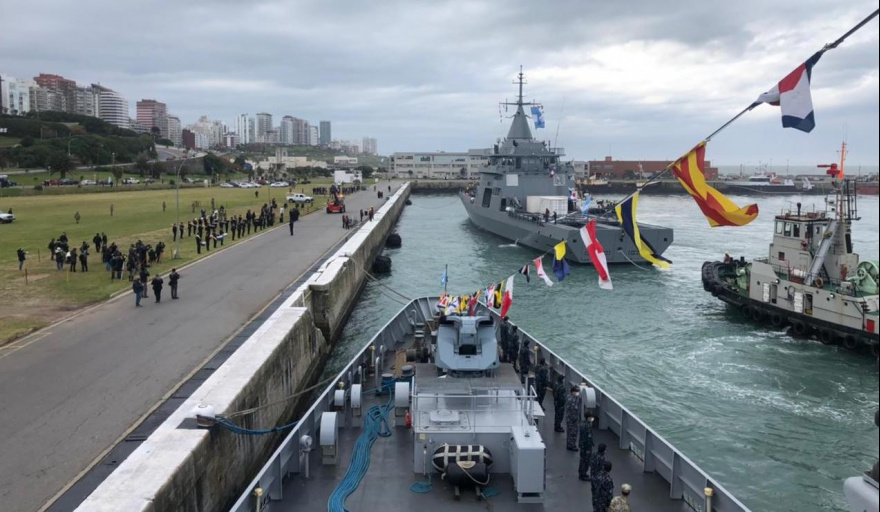 El nuevo patrullero oceánico de la Armada Argentina tomó puerto en la Base Naval Mar del Plata. Se efectuaron una revista naval de bienvenida y una ceremonia que estuvieron presididas por el Ministro de Defensa y el Jefe de la Armada.