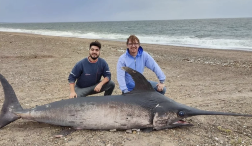 El Instituto de Investigación de Hidrobiologíarecuperó un pez espada, Xiphias gladius, que se encontraba varado en la Playa de Puerto Lobos en el Golfo San Matías en la Provincia de Chubut.