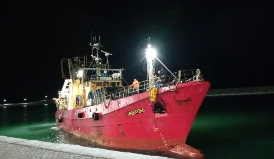 Se trata del buque de Pesquera Veraz, "Argentino" que tras ingresar al puerto de Caleta Paula con cajones de merluza fresca debió permanecer varias horas con la materia prima a bordo porque los trabajadores no tenían guantes para realizar la descarga.