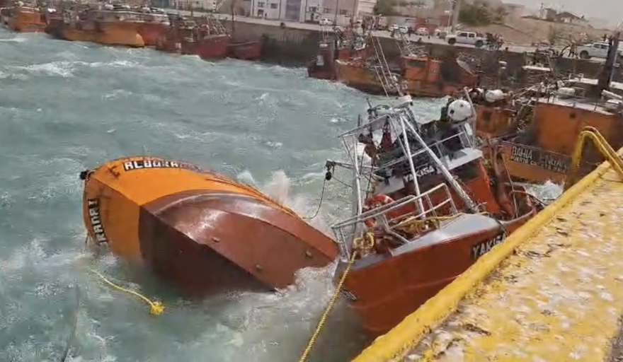 La fuerza del temporal también provocó serias consecuencias en el Puerto Caleta Paula, en Caleta Olivia, donde tres embarcaciones artesanales de la denominada Flota Amarilla —Yakisa, Barracuda y Alborada— se hundieron a causa de los vientos extremos y el fuerte oleaje registrados durante la jornada.