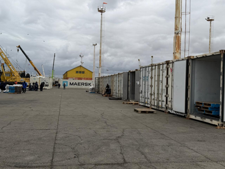 “Una tanda ya viene a descargar la segunda marea”, anunció el directivo del puerto, Pablo Martín, para luego rogar que “el pescado no se corte”.